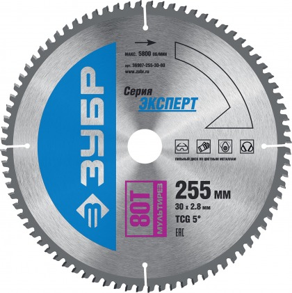 Зубр - Диск пильный 255х30мм 80Т мультирез 36907-255-30-80
